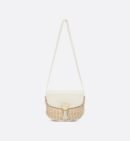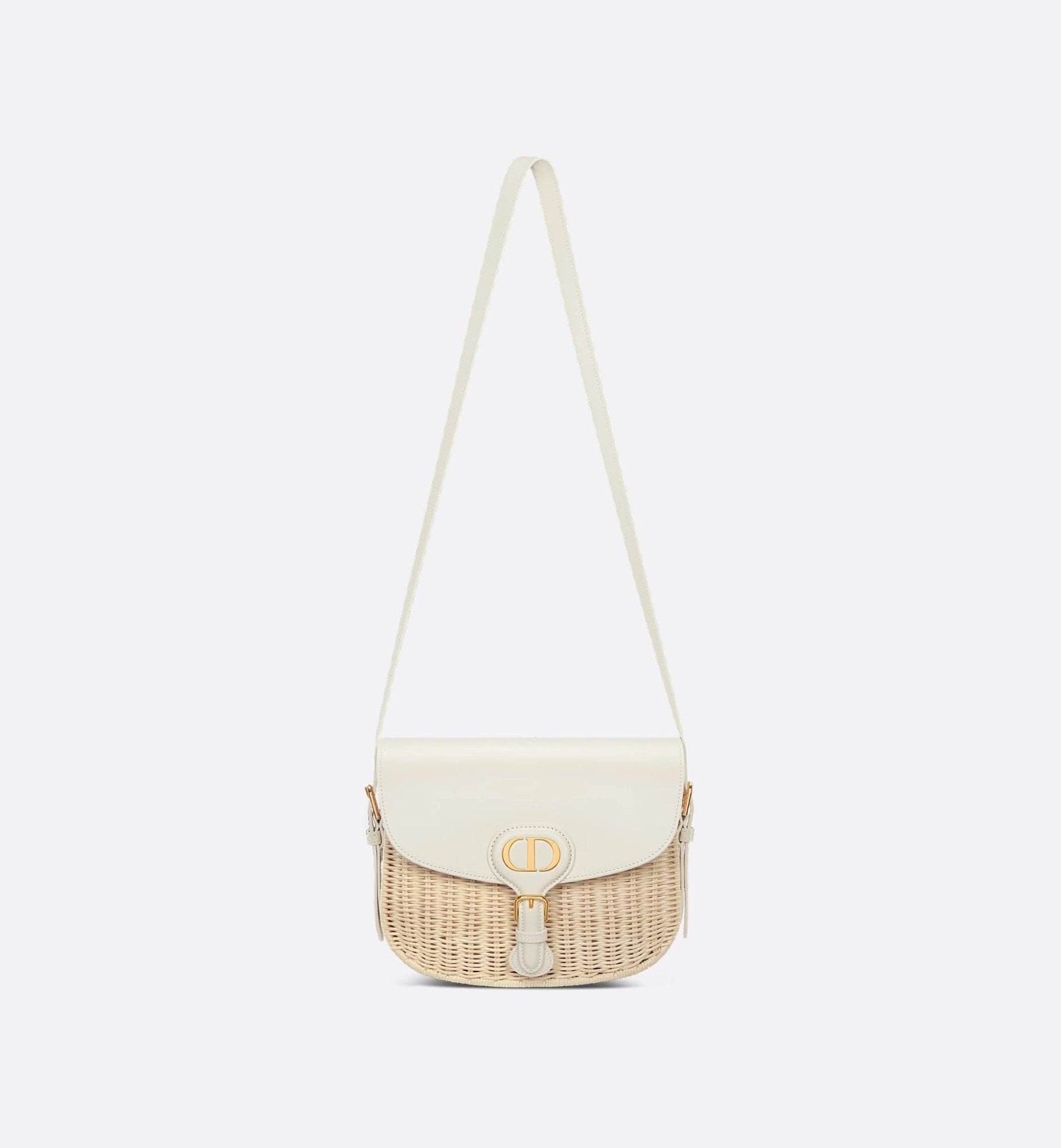 A poetic fusion of heritage craft and modern form, the Bobby Medium Hobo reimagines an iconic silhouette in sun-washed textures and sculptural detail. Handwoven in natural rattan—a nod to timeless summer ateliers—the design is framed by a smooth calfskin flap in soft latte, its surface accented with the House’s signature buckle motif.