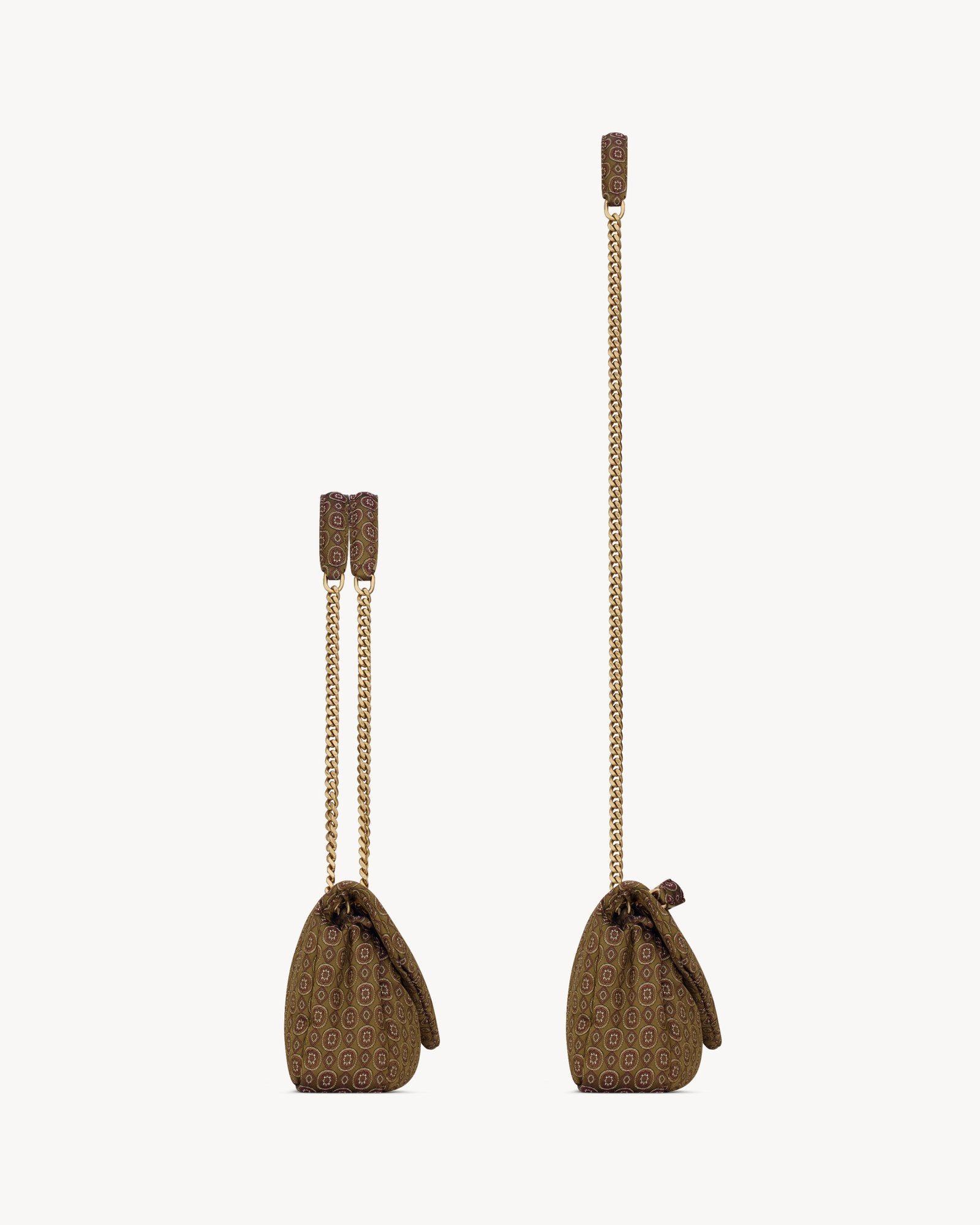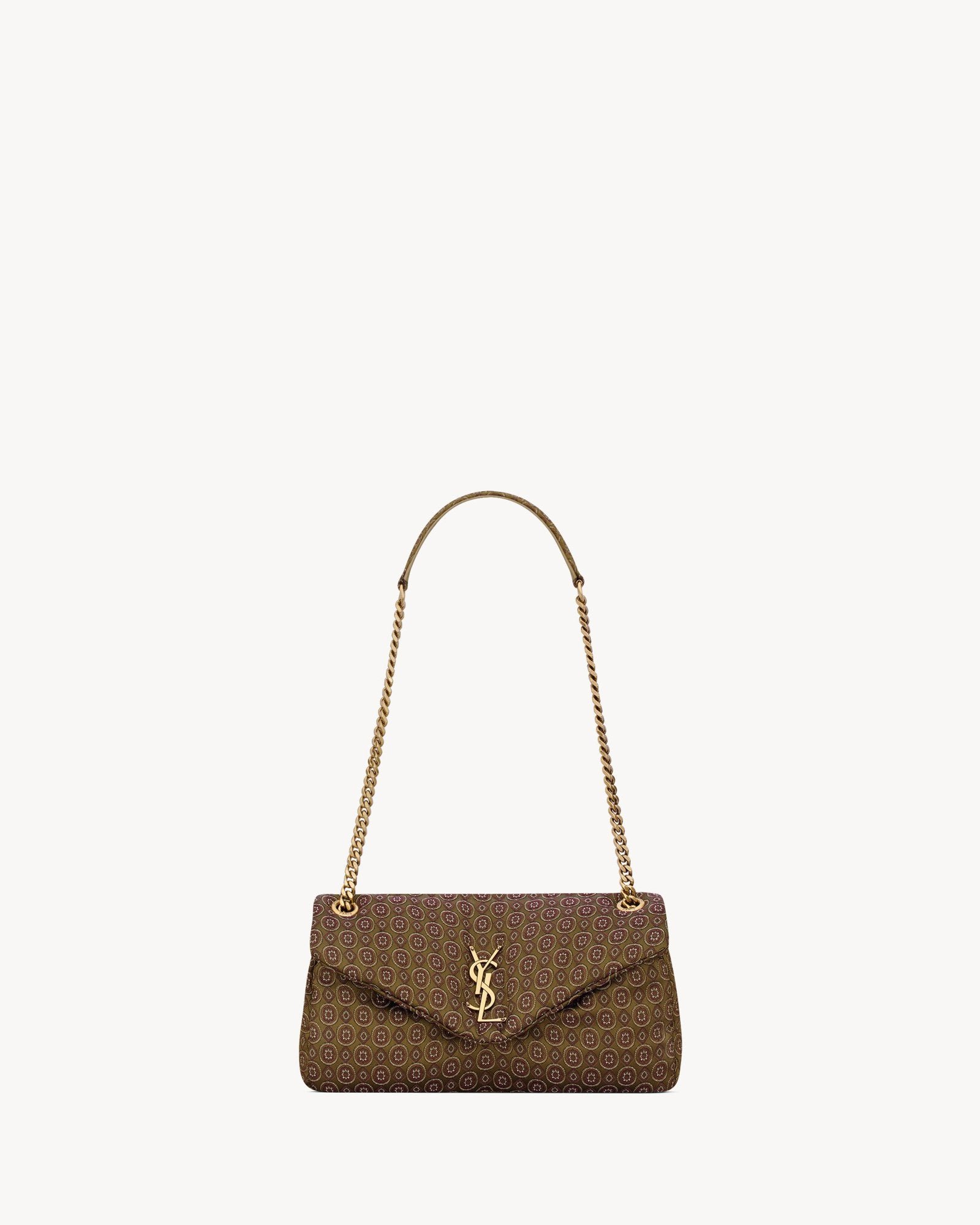 A supple and vibrant bag crafted in medallion jacquard fabric, exquisitely decorated with the iconic CASSANDRE motif. This versatile piece features a sliding chain strap, allowing it to be worn comfortably on the shoulder or crossbody.