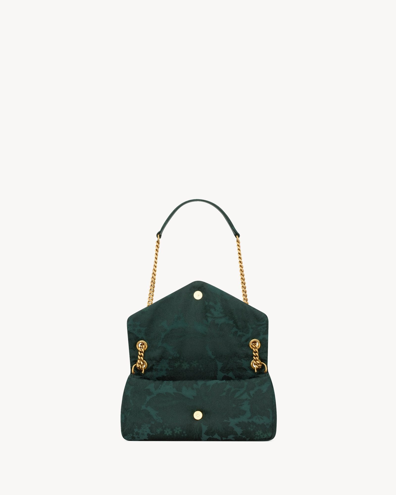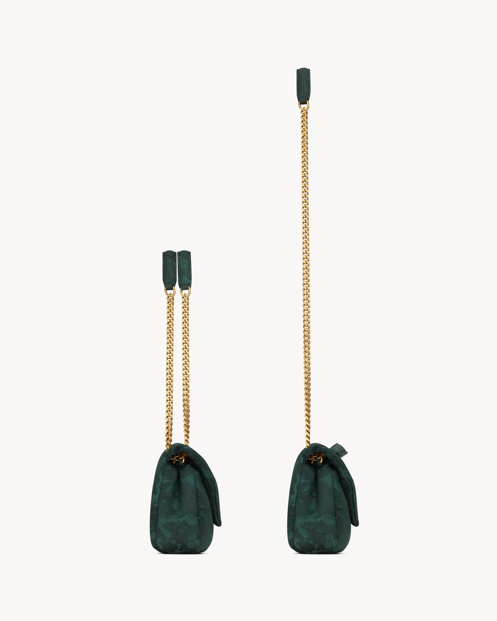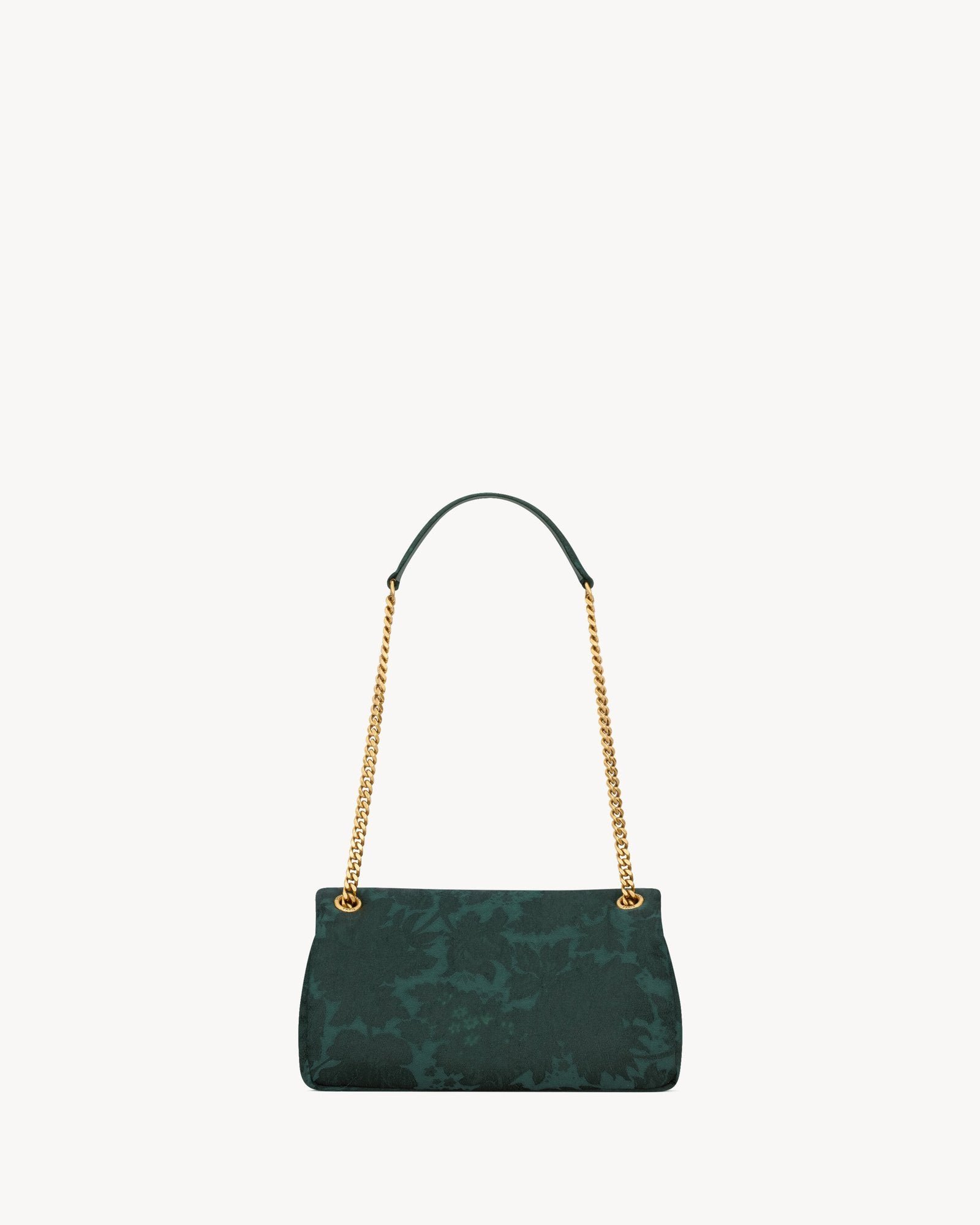 A supple and elegant bag crafted from baroque floral jacquard made with certified viscose, adorned with the signature CASSANDRE emblem. This versatile accessory features a sliding chain strap, allowing for comfortable wear on the shoulder or crossbody.