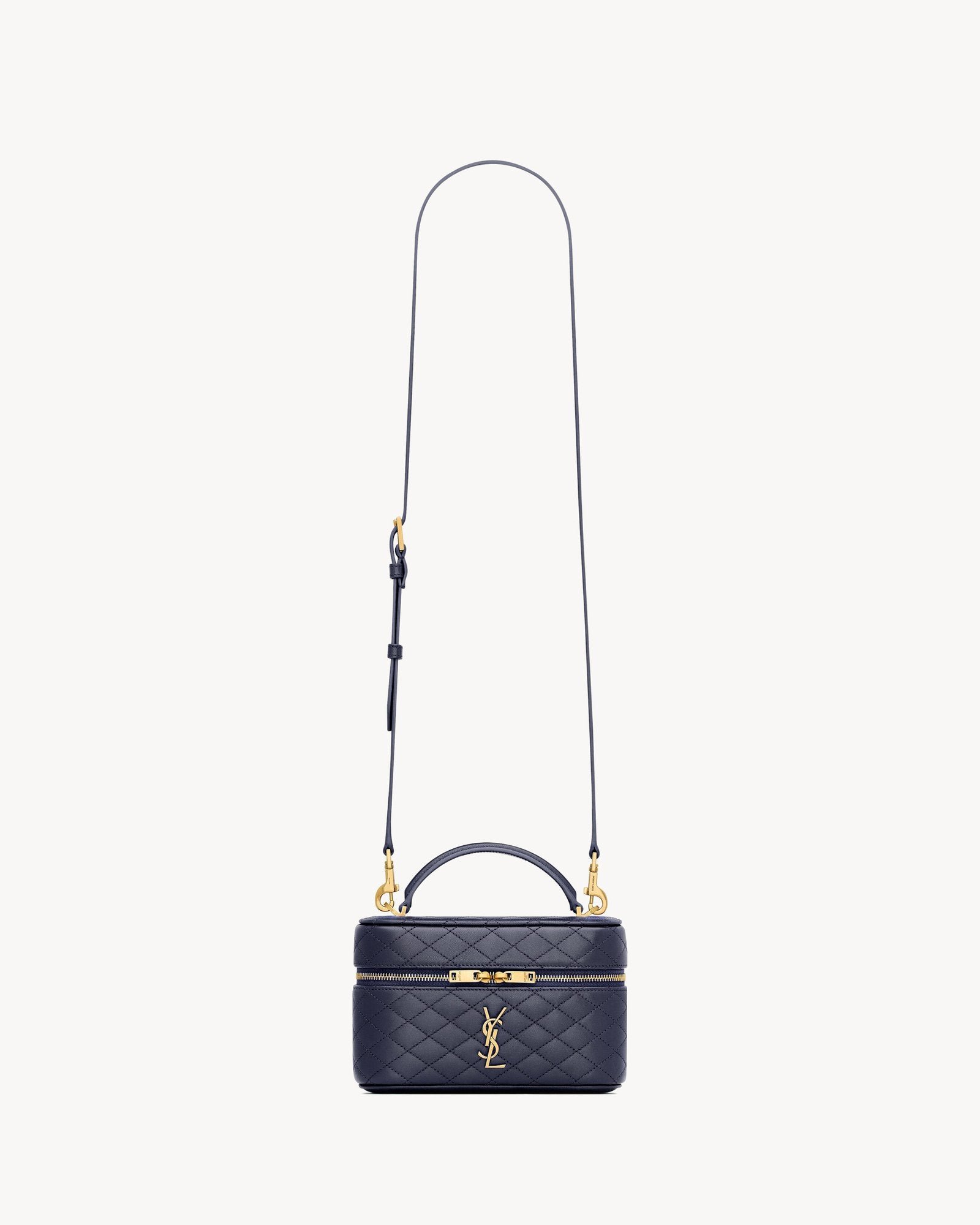 A chic vanity bag featuring the signature CASSANDRE and diamond-quilted topstitching. This compact yet stylish piece is fully lined in supple leather and includes an adjustable, detachable chain strap, offering versatile carrying options—wear it on the shoulder or carry it by hand.