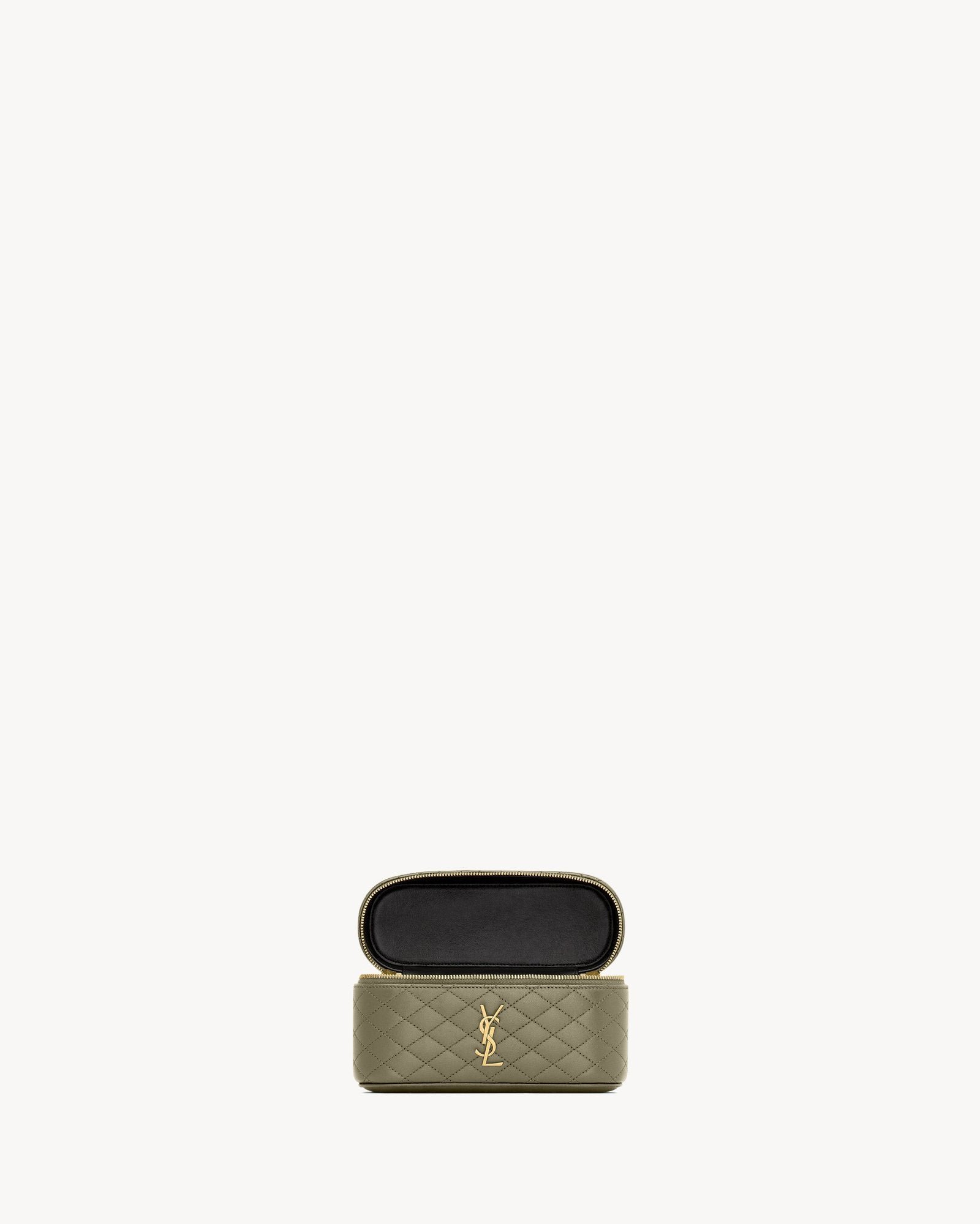 A chic vanity bag featuring the signature CASSANDRE and diamond-quilted topstitching. This compact yet stylish piece is fully lined in supple leather and includes an adjustable, detachable chain strap, offering versatile carrying options—wear it on the shoulder or carry it by hand.