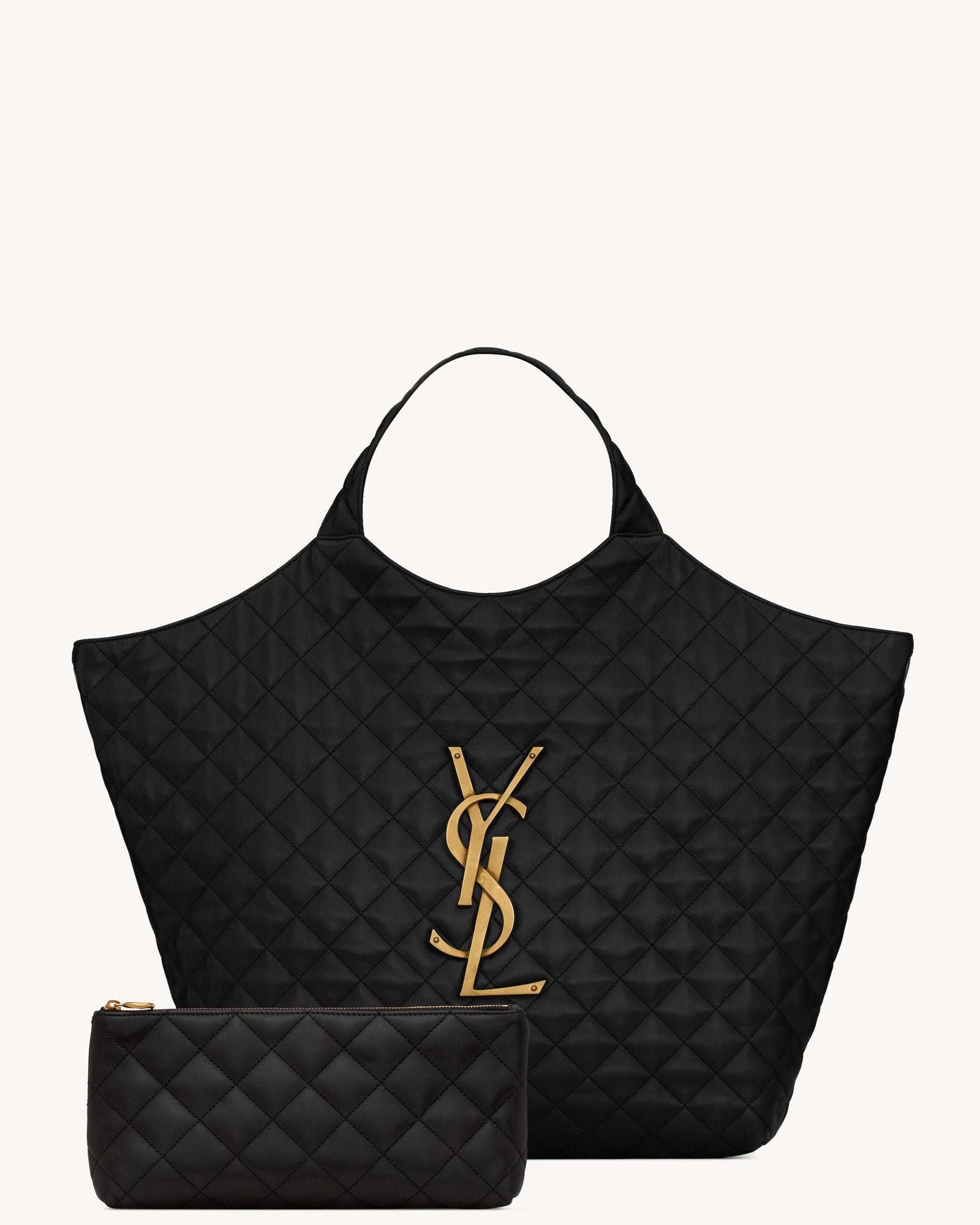 This maxi shopping bag in supple lambskin is beautifully detailed with signature carré-quilted overstitching and the new sculpted jewel Cassandre, combining timeless elegance with modern flair. Its versatile design features a detachable metal chain toggle closure that allows you to wear it wide open or with closed sides for a tailored silhouette.