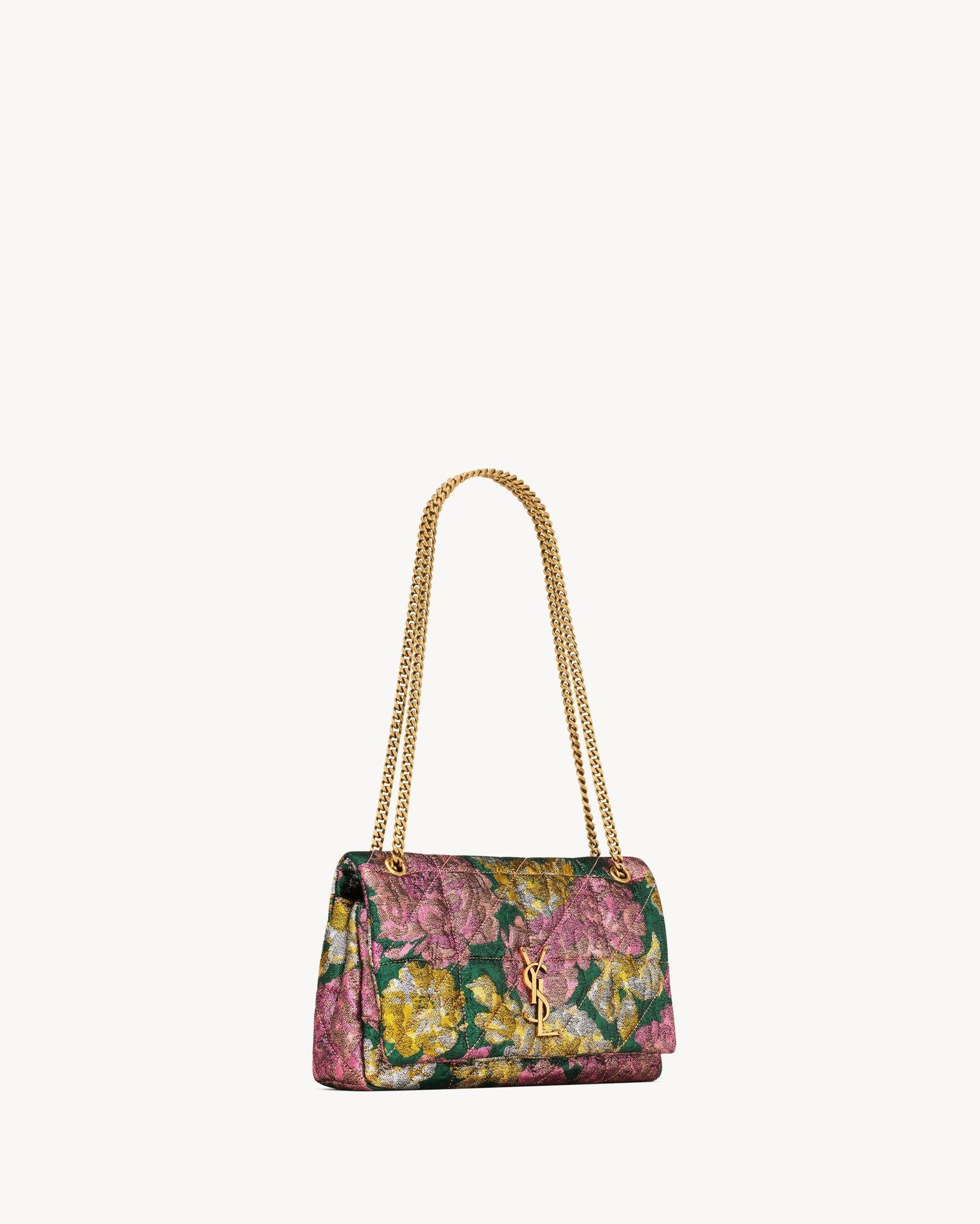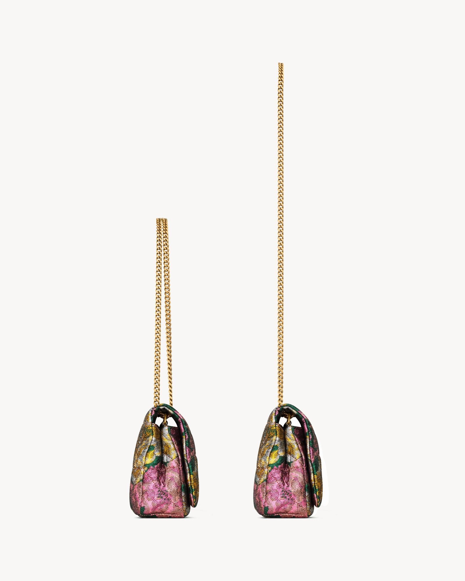 This structured and lightweight flap bag is crafted from certified wool brocade, beautifully adorned with the iconic CASSANDRE and CARRÉ RIVE GAUCHE quilted topstitching. Perfect for both day and evening, it features an adjustable sliding chain strap that can be worn in two different ways for versatile styling.