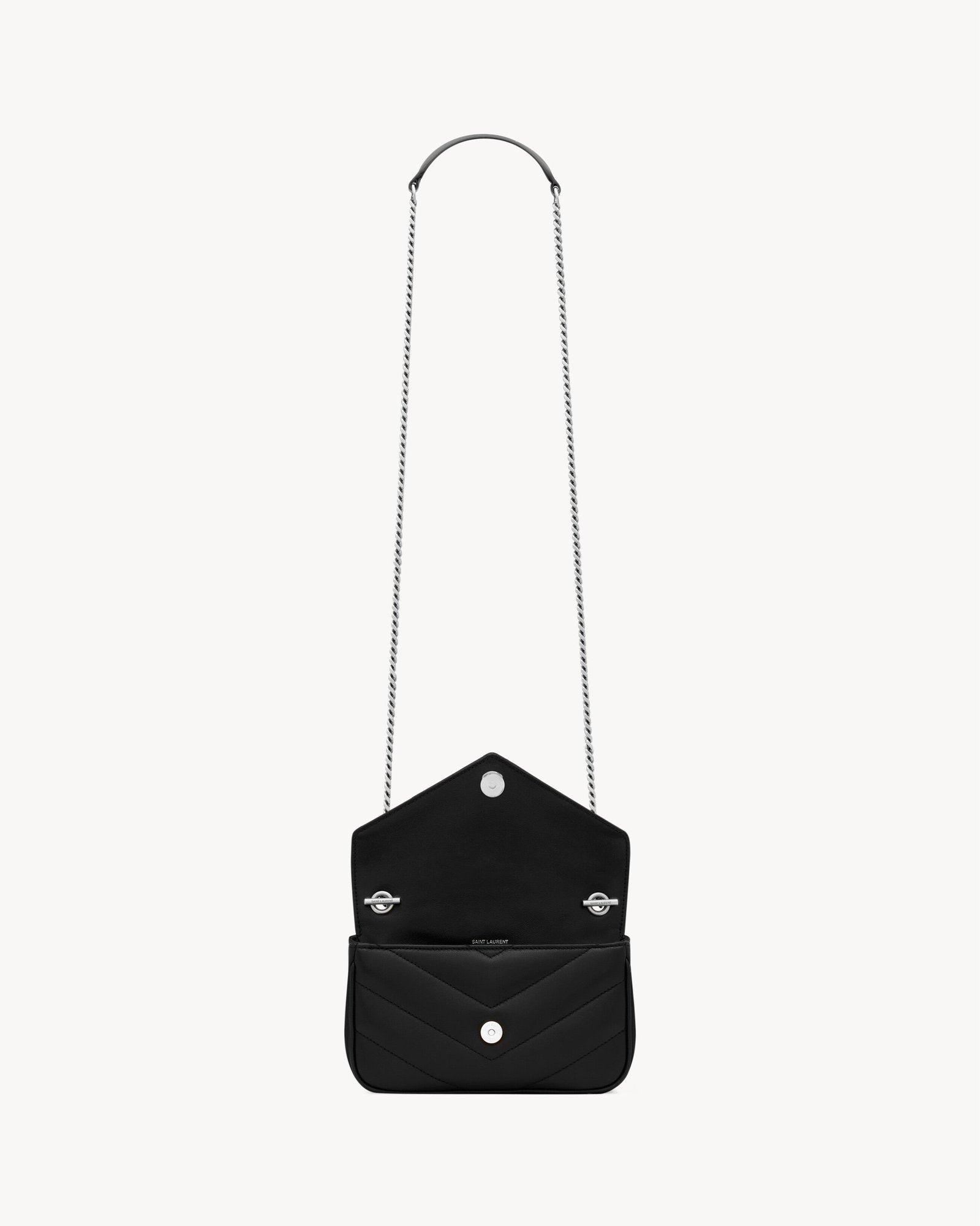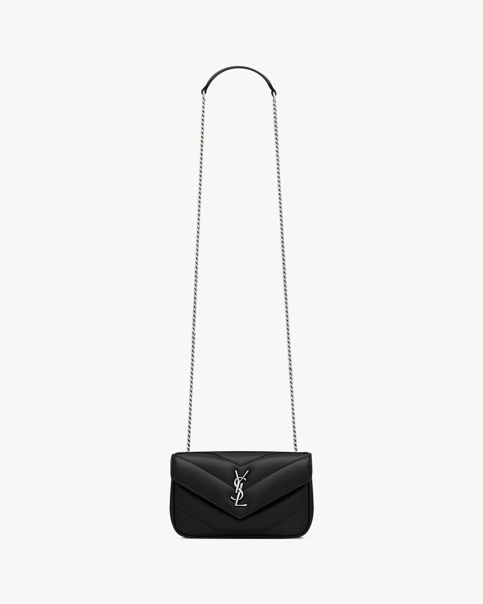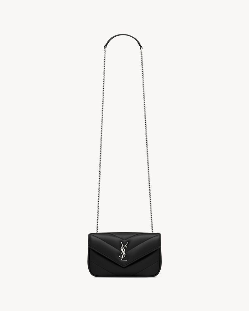 An elegant chain bag crafted from soft lambskin, featuring the iconic chevron-quilted topstitching. This spacious bag includes a removable leather pouch and a pocket mirror for added practicality. The sliding chain strap offers versatile styling options, allowing you to wear it on the shoulder or crossbody.
