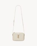An emblem of contemporary elegance, this camera bag is crafted from richly textured quilted calfskin leather. Centered with a subtle signature emblem, its streamlined silhouette is balanced by an adjustable leather strap for effortless shoulder wear. The zip closure secures essentials within a refined grosgrain-lined interior, while flat pockets inside and out add discreet functionality.