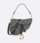 A timeless emblem of the Maison, reinterpreted in rich texture and heritage pattern. This Saddle bag is crafted in blue Dior Oblique jacquard with tonal calfskin accents, offering a refined take on a house icon. Signature antique gold-finish hardware and a sculptural flap closure complete the silhouette, while a removable strap allows for seamless transitions from shoulder to crossbody wear.