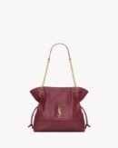 This small tote is a supple nappa version of the iconic JAMIE, featuring elegant CASSANDRE and CARRÉ RIVE GAUCHE topstitching. Lightweight and versatile, it includes a removable zip pouch and a chain strap designed for comfortable shoulder carry. Drawstring ties on the sides allow you to cinch or expand the bag, creating stylish, adaptable silhouettes.