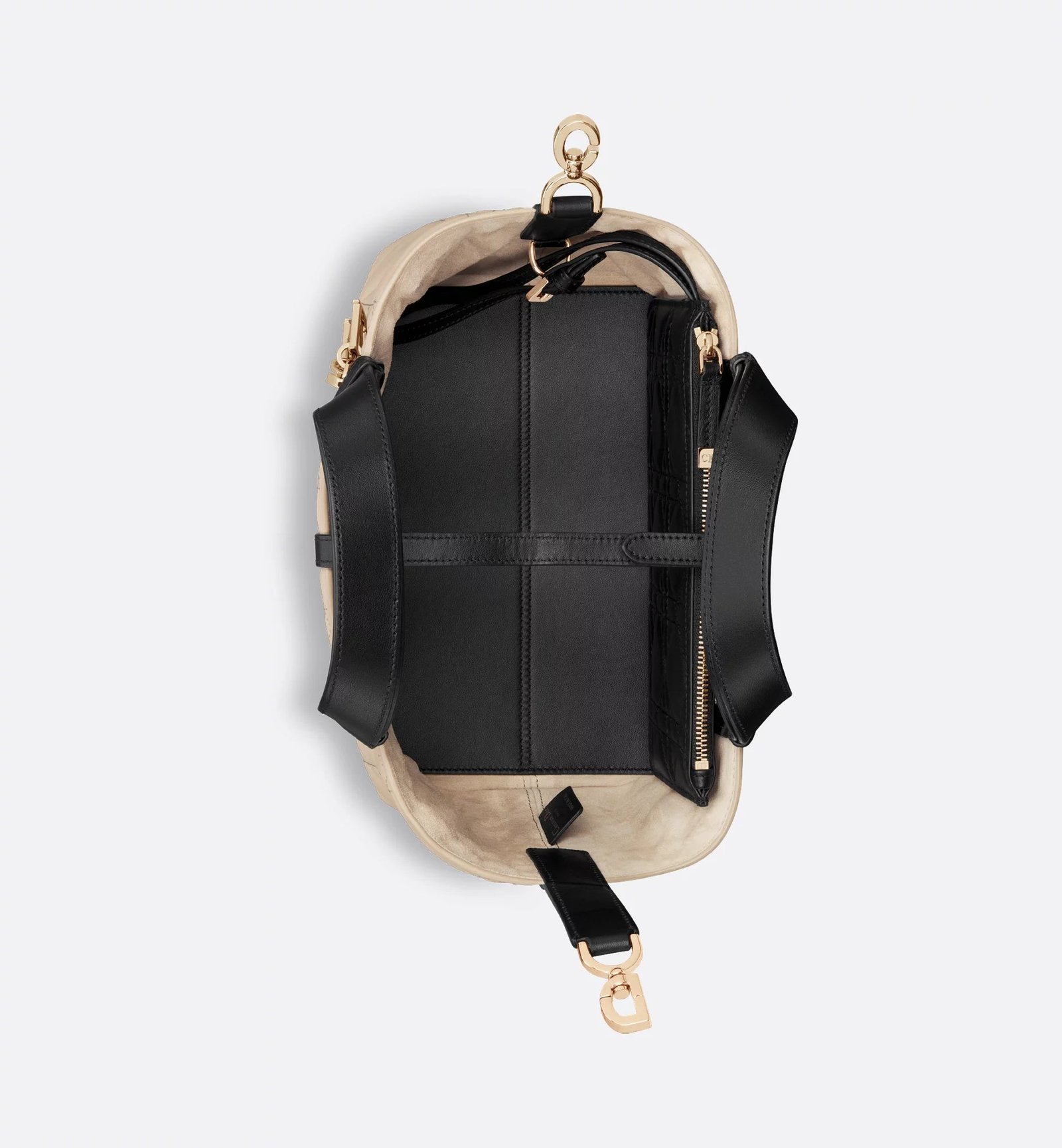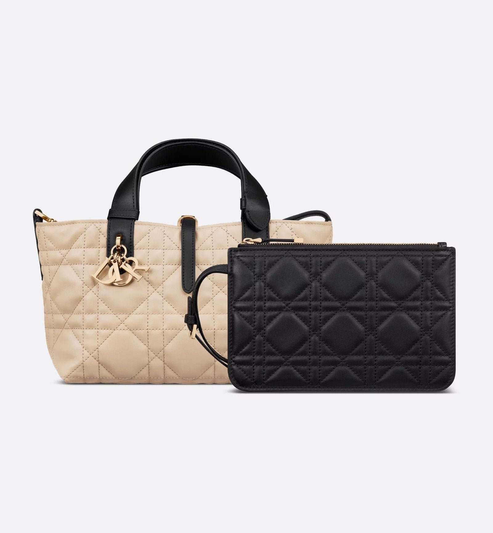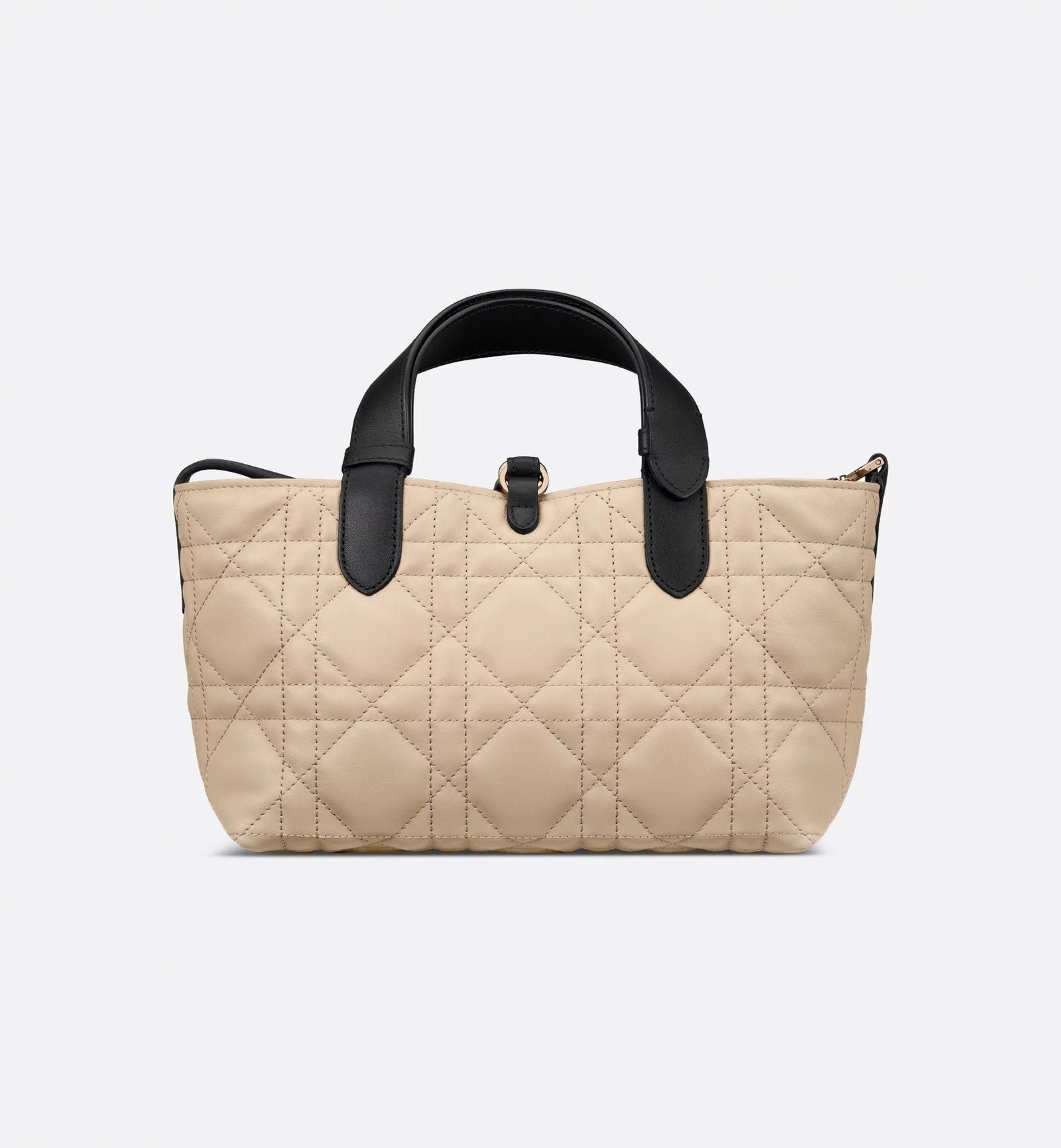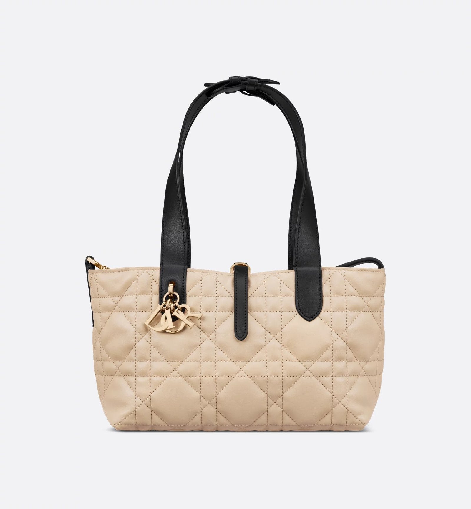 Petite yet poised, the Toujours Small Tote is a sculptural companion that balances artisanal detail with quiet charm. Crafted in rope beige calfskin with contrasting black leather accents, its softly structured silhouette is framed by bold Macrocannage stitching—a timeless signature reinterpreted with modern edge.
